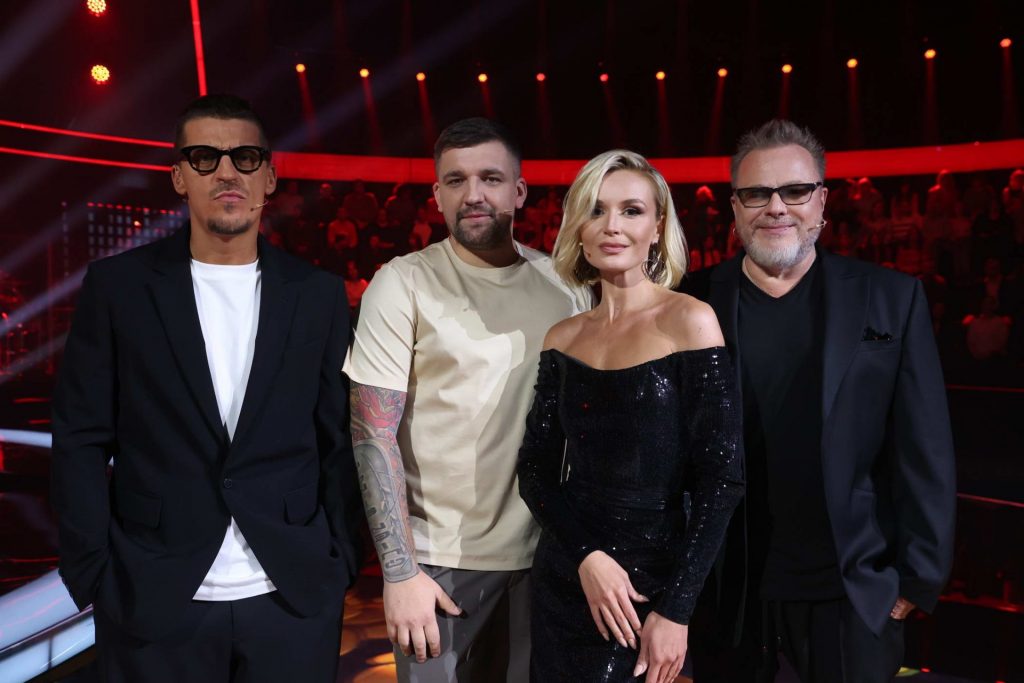 Итак, в традиционных красных креслах уже знакомые многим члены жюри Баста и Полина Гагарина, а также новички в этом качестве в шоу Владимир Пресняков и Антон Беляев.