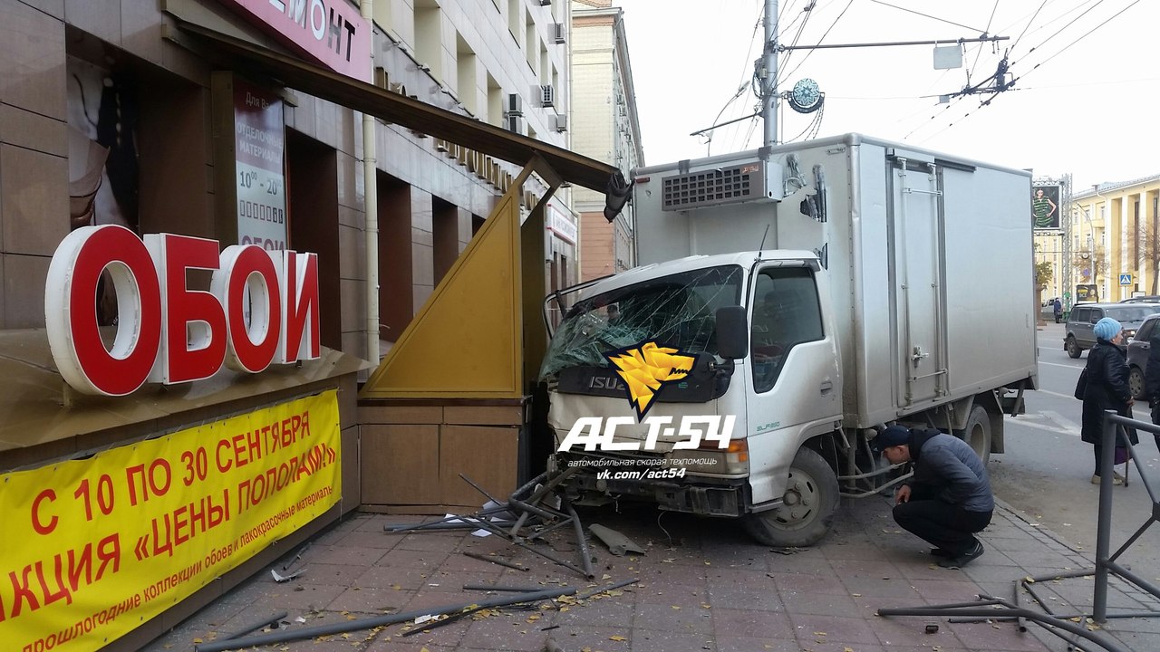 Гружёный мебелью автомобиль Isuzu Elf вылетел на тротуар, проломив металлическое ограждение, сбил женщину и врезался в крыльцо магазина обоев. Авария произошла на Красном проспекте, водитель грузовика рассказал, что его подрезали, говорится в сообщении службы эвакуации АСТ-54.