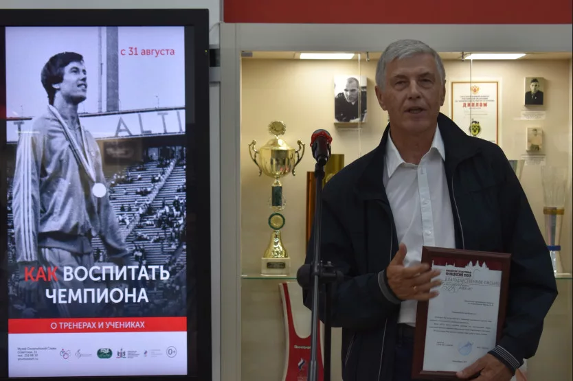 В числе поистине великих наставников, о ком рассказывает экспозиция, – Виктор Кузнецов (греко-римская борьба), Юрий Каразаев (подводный спорт), Борис Писецкий и Павел Кондратенко (фехтование), Владимир Сомсиков и Владимир Кочнев (спортивная гимнастика), Александ Бухашеев и Виктор Швецов (легкая атлетика), многие другие.