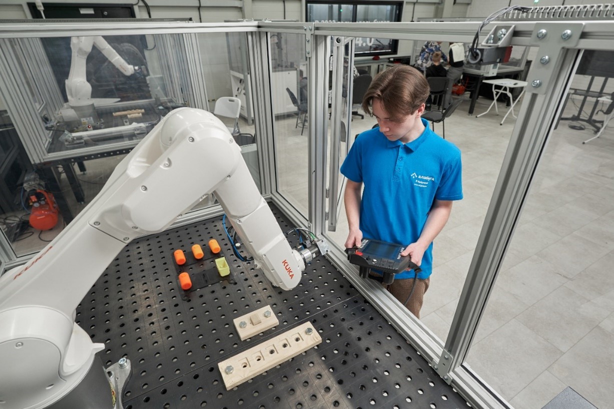 Что касается обучения, то здесь оно проходит не так, как мы привыкли. Лаборатории оснащены современным оборудованием и роботами. Но это не декорации – все это собирают, разбирают и программируют студенты. Каждое оборудование было приобретено по указанию заводов, чтобы студенты могли обучаться на том, с чем им предстоит работать.