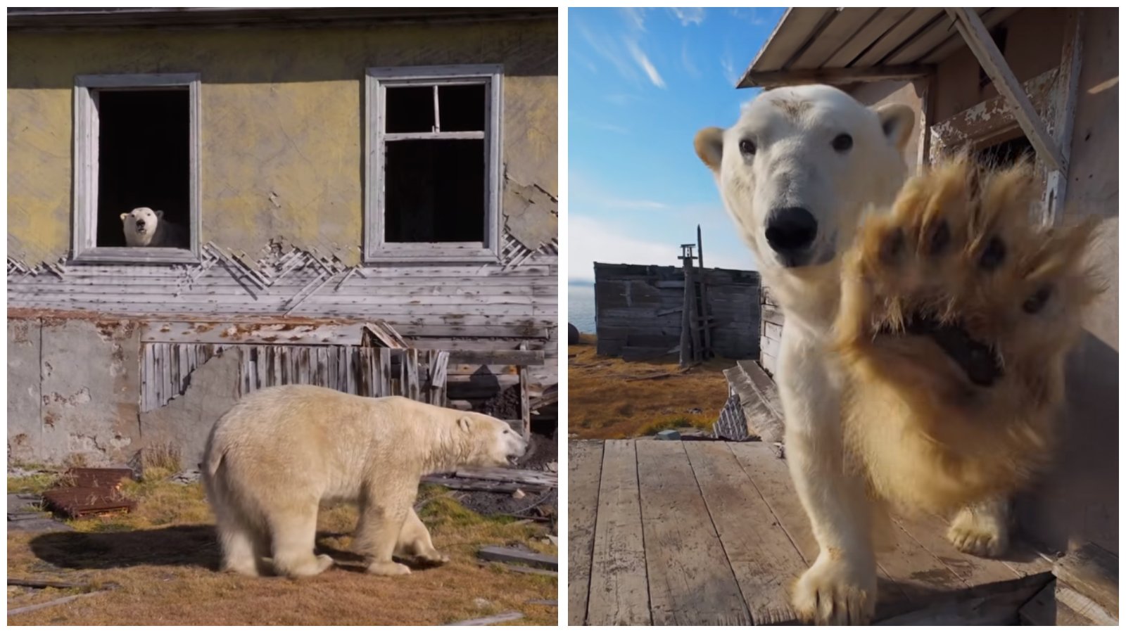 «Полярные медведи здесь живут на заброшенной метеостанции. Неподалёку находится лежбище моржей и плавают киты. Мишкам не чуждо чувство комфорта и уюта, они воспринимают дома, как укрытие. Удобно, ветер не дует, дождь не идёт. А в солнечную погоду можно во дворе на пузе полежать», – поделился с подписчиками Вадим Махоров в соцсети «ВКонтакте».