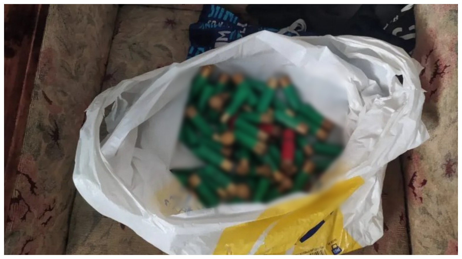 Далее был проведён обыск дома родственника задержанного, в котором он остановился погостить. Там было обнаружено более сотни патронов к изъятому ранее оружию.