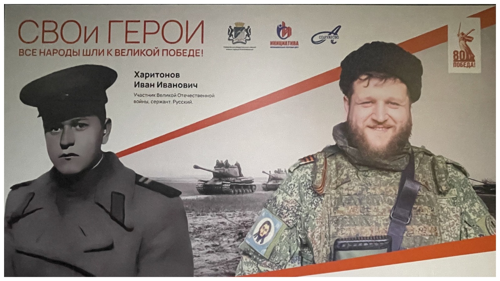 24 апреля в Первомайском сквере в Новосибирске открылась экспозиция с фотографиями ветеранов, посвящённая 80-летию Победы в Великой отечественной войне. Цель экспозиции — передать бойцам СВО патриотический настрой их предшественников.