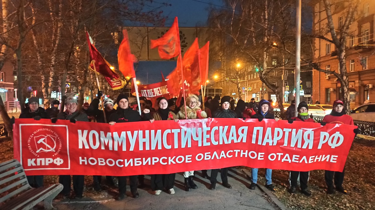 В 17:30 на Красном проспекте стартует шествие от пересечения с улицей Крылова. Колонна представителей партии, трудовых коллективов, молодежи, ветеранов с лозунгами двинется в сторону площади Ленина, где в 18:00 состоится митинг. На мероприятии запланированы выступления секретарей обкома, депутатов-коммунистов, представителей ветеранских и общественных организаций.