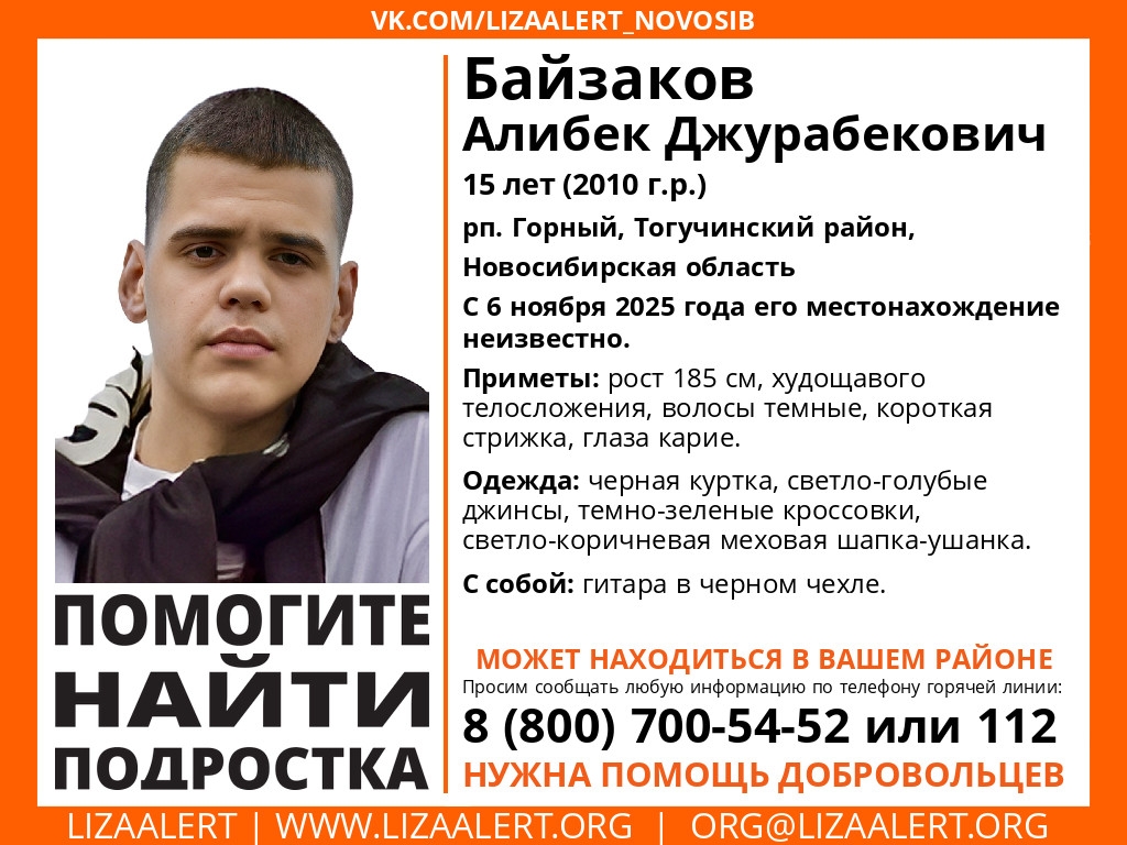 В рабочем посёлке Горный Тогучинского района пропал 15-летний Алибек Байзаков. Об этом сообщает пресс-служба поискового отряда «ЛизаАлерт».