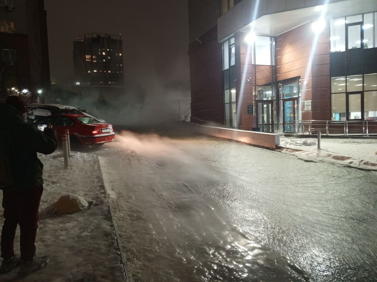 Вечером, 11 ноября, возле здания на улице Зыряновская, 59 в Новосибирске произошёл прорыв теплотрассы — по дороге потекла настоящая река кипятка. Горячая вода стекала в ливнёвку, а паром окутало всю прилегающую территорию. Об этом изданию НДН.инфо сообщила читательница.