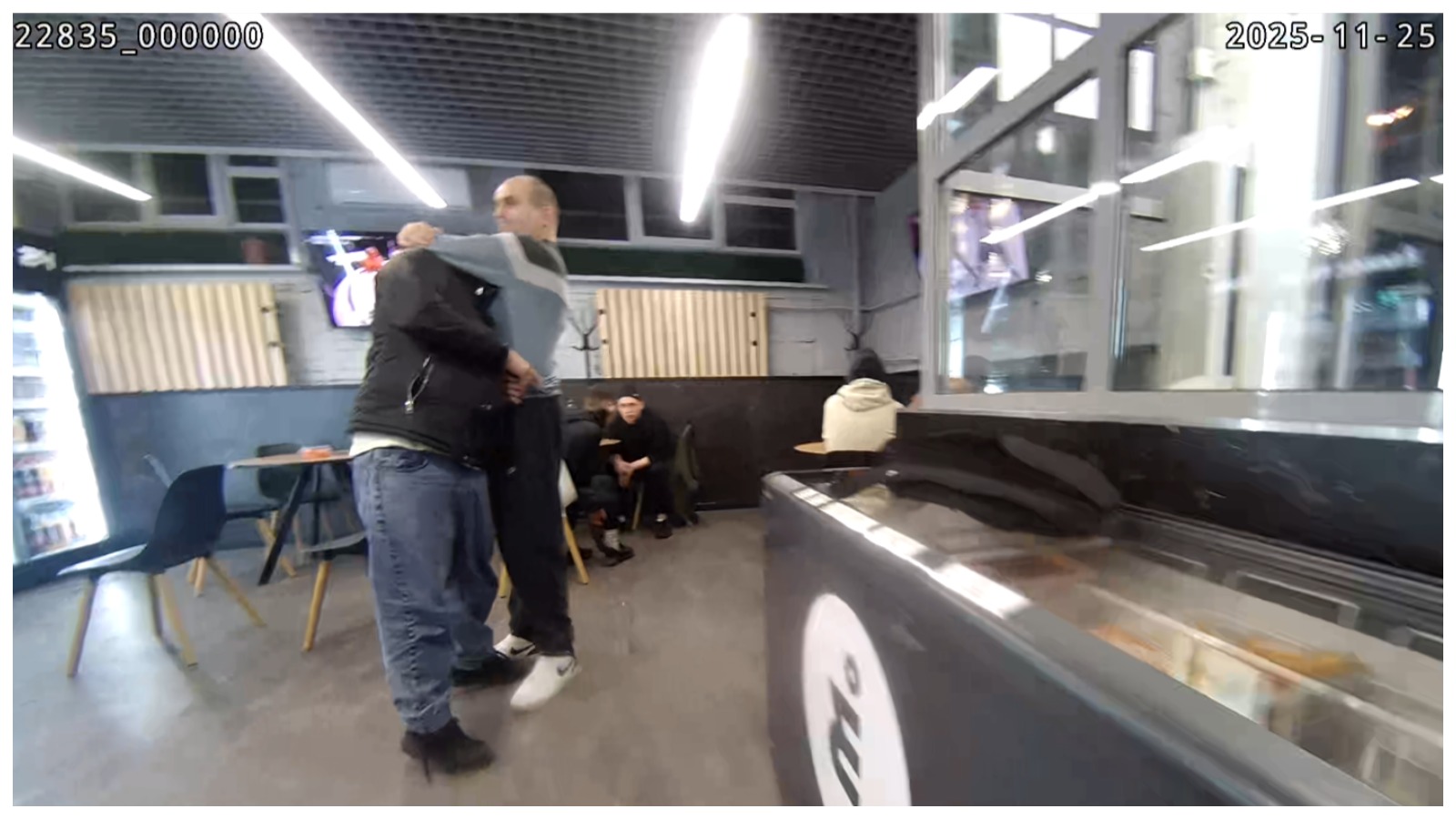 Компания решила бороться за своё право портить чужое имущество и отдых других гостей, поэтому на улице товарищи сообща напали на бронированных и вооружённых дубинками и перцовками бойцов частной охранки. Один из них трижды выстрелил из аэрозольного пистолета в лица парней.