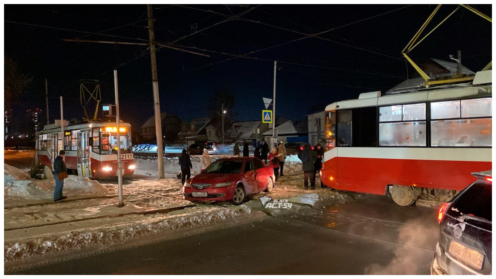 В ночь на 1 декабря на перекрёстке улиц Связистов и Титова в Ленинском районе Новосибирска произошло дорожно-транспортное происшествие на трамвайных путях.