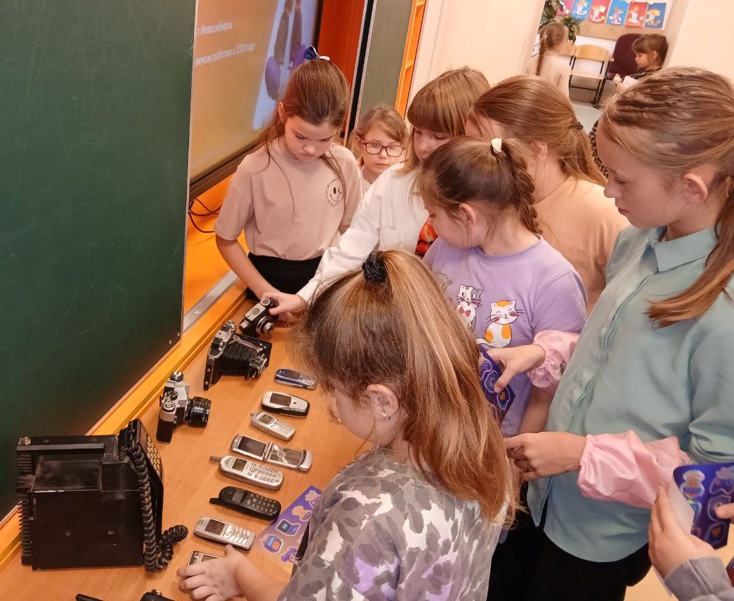 На первом уроке школьники погрузились в мир инноваций, узнали о важнейших этапах развития и перспективах цифровой отрасли, а также познакомились с историей связи. Представитель провайдера познакомил участников с экспонатами из коллекции музея сервисного центра г. Новосибирска: старыми моделями мобильных телефонов и видеокамер. Это позволило ребятам лучше представить, как быстро развиваются технологии.