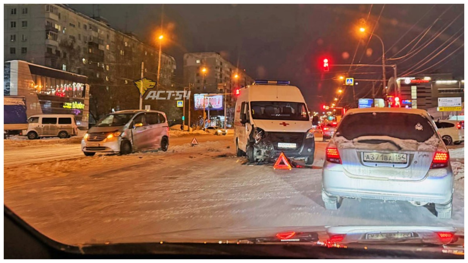 Вечером 14 декабря на улице Бориса Богаткова произошло дорожно-транспортное происшествие. Об этом сообщил подписчик паблика «АСТ-54». На дороге столкнулись легковушка и карета скорой помощи. О пострадавших сообщений не было, но автомобиль медиков заметно повреждён и не сможет вернуться в автопарк подстанции без предварительного ремонта.