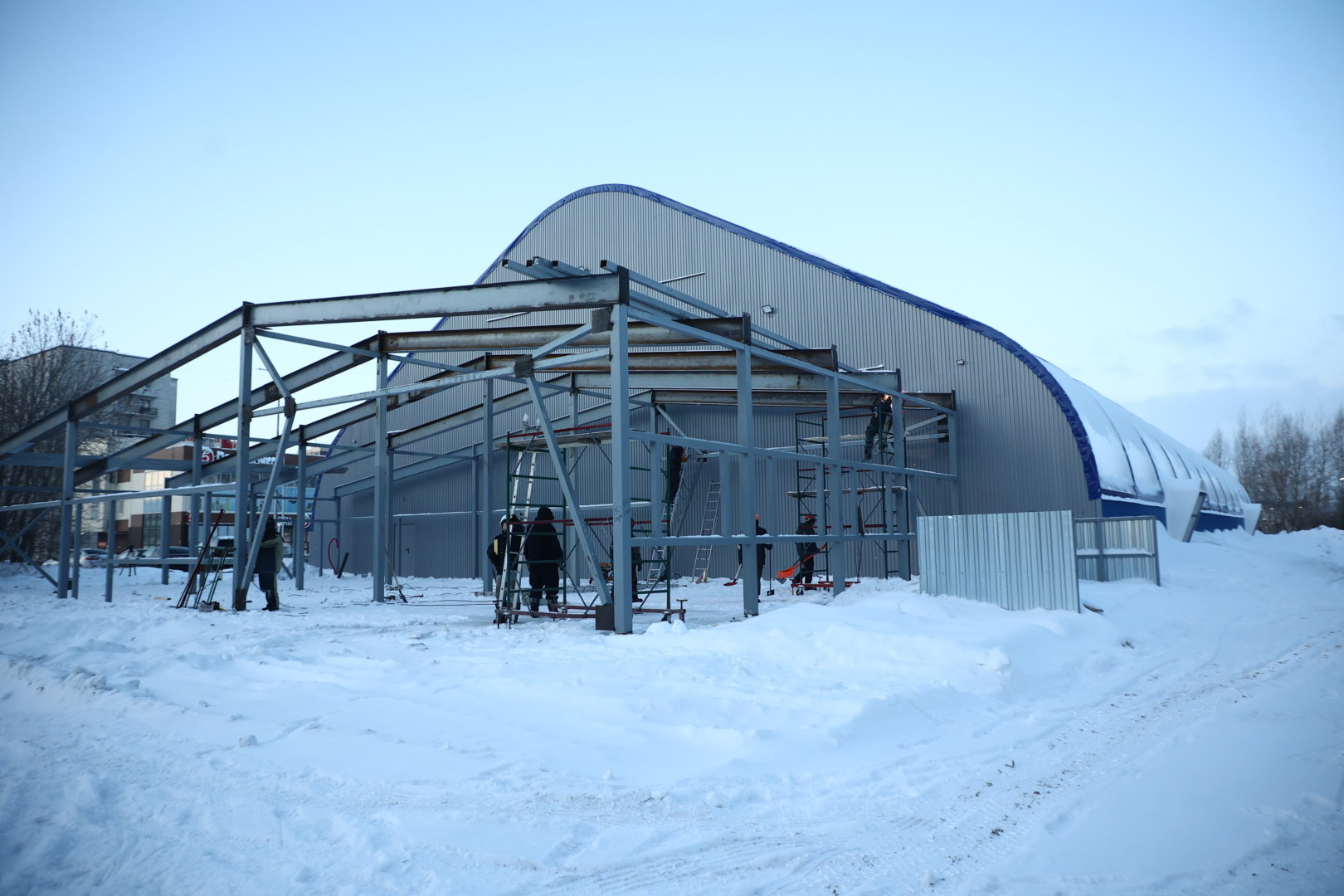 К строительству хоккейной коробки с каркасно-тентовым покрытием на аллее вдоль улицы Петухова приступили в этом году. Объект включает в себя модульную тёплую раздевалку, тренировочный зал, уличную площадку для воркаута и паркура.