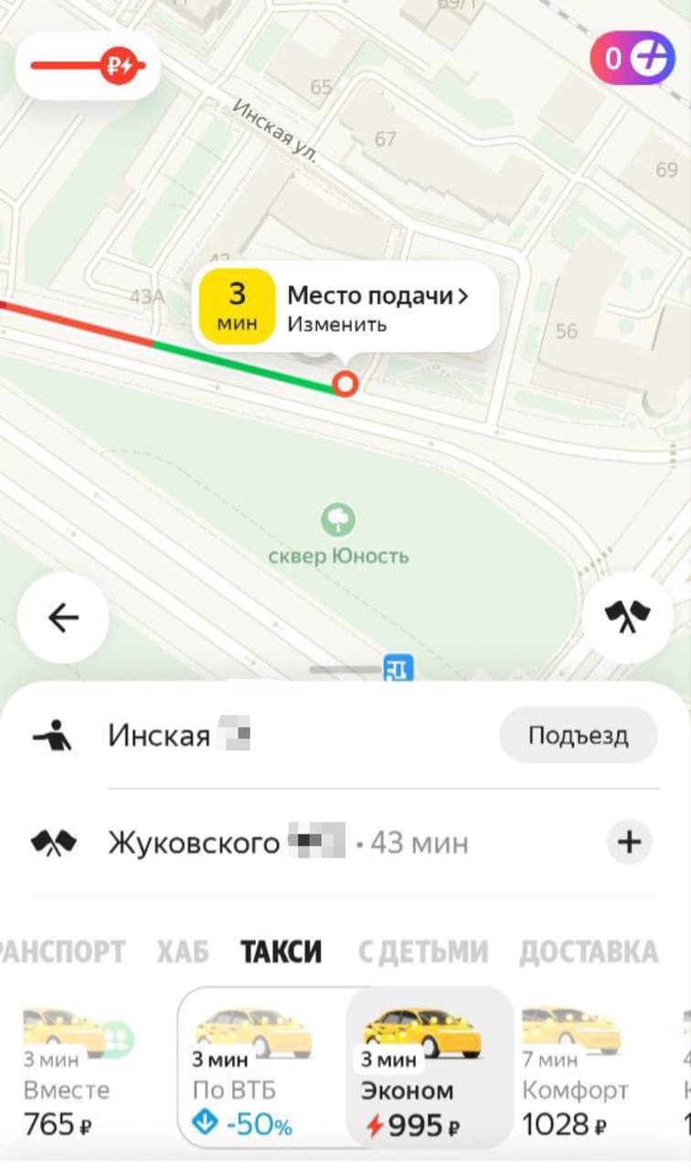 Так, жительница города попыталась заказать такси от улицы Инской до Жуковского. Стоимость поездки составила 995 рублей, хотя обычно за этот маршрут она платит не более 400 рублей.