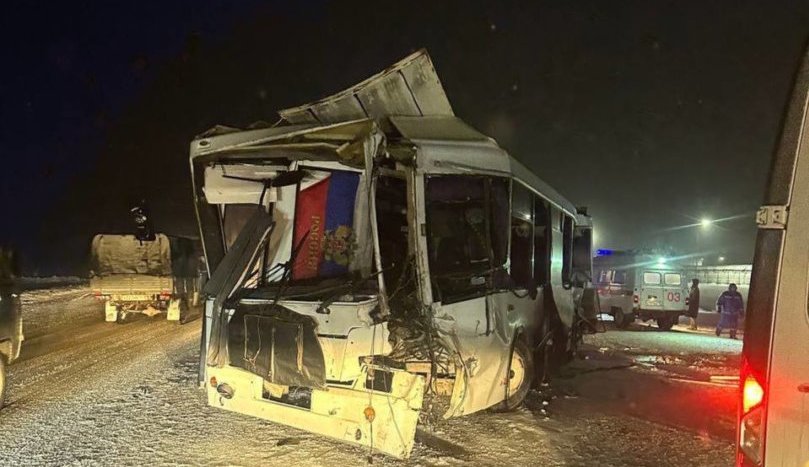 По предварительным данным, 58-летний водитель грузовика при повороте налево не уступил дорогу автобусу и допустил столкновение.