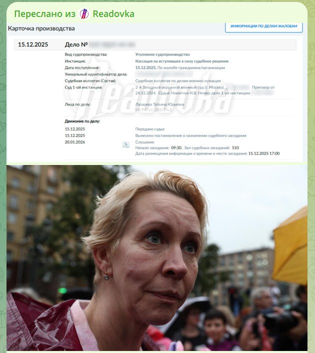 Слушание по её делу назначено на январь 2026 года. Об этом сообщается на сайте Верховного Суда РФ.