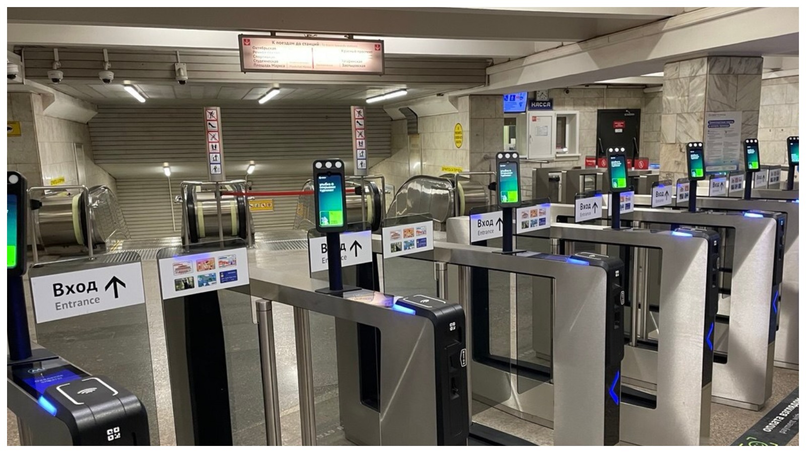 Терминалы, которые любят улыбки пассажиров, установлены на всех 14 станциях подземки в Новосибирске, система установлена суммарно на 164 турникетах.