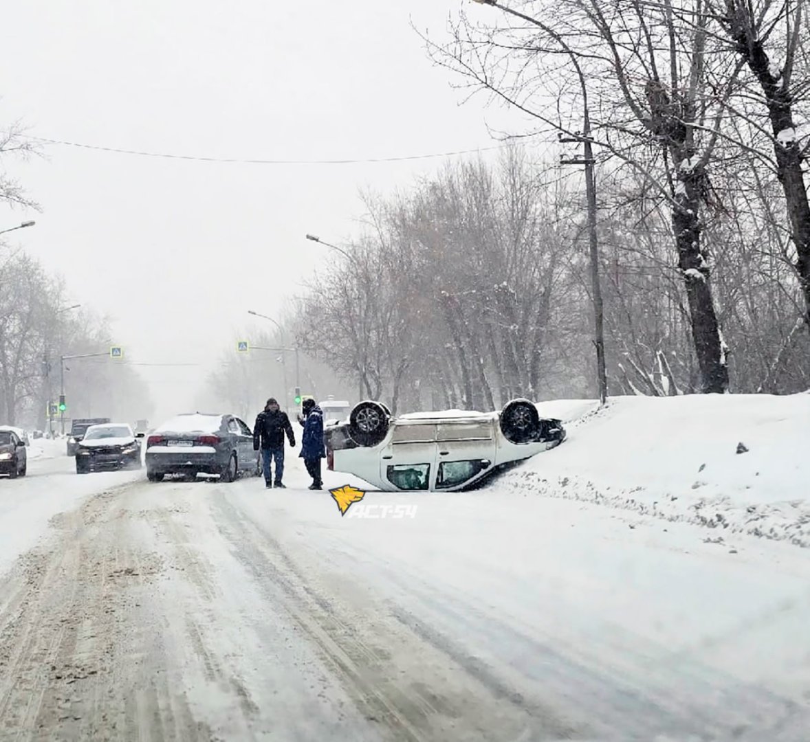 12 января на улице Никитина в Новосибирске столкнулись два автомобиля, в результате чего один из них перевернулся на крышу. О происшествии сообщили очевидцы в Telegram-канале «АСТ-54 Black».