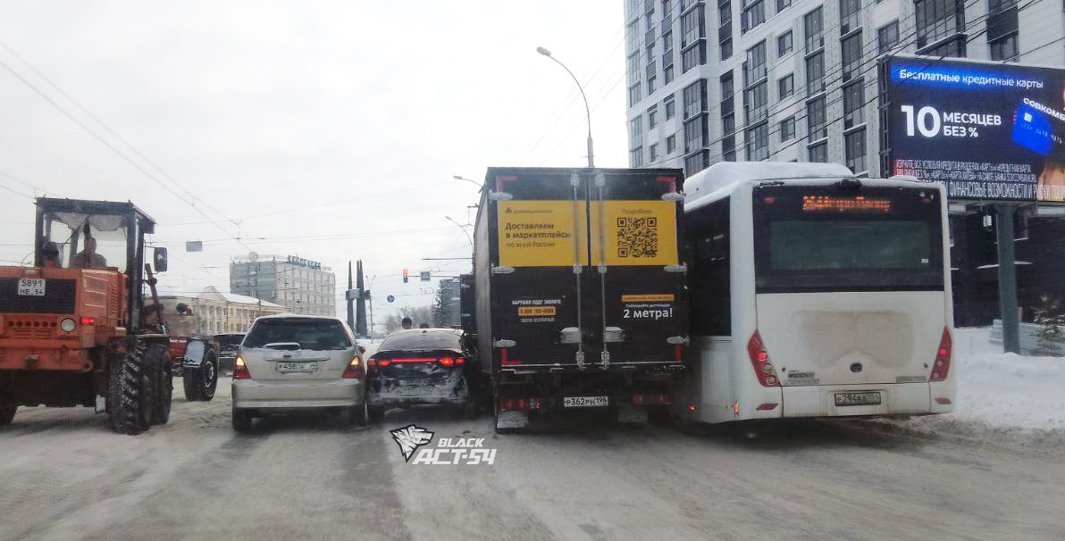 Массовое ДТП произошло 13 января на улице Сибиряков-Гвардейцев в Новосибирске. Участниками аварии стали минивэн Honda Odyssey, седан Kia Rio, «Газель» и пассажирский автобус маршрута № 264. Об инциденте сообщили очевидцы в Telegram-канале «АСТ-54 Black».