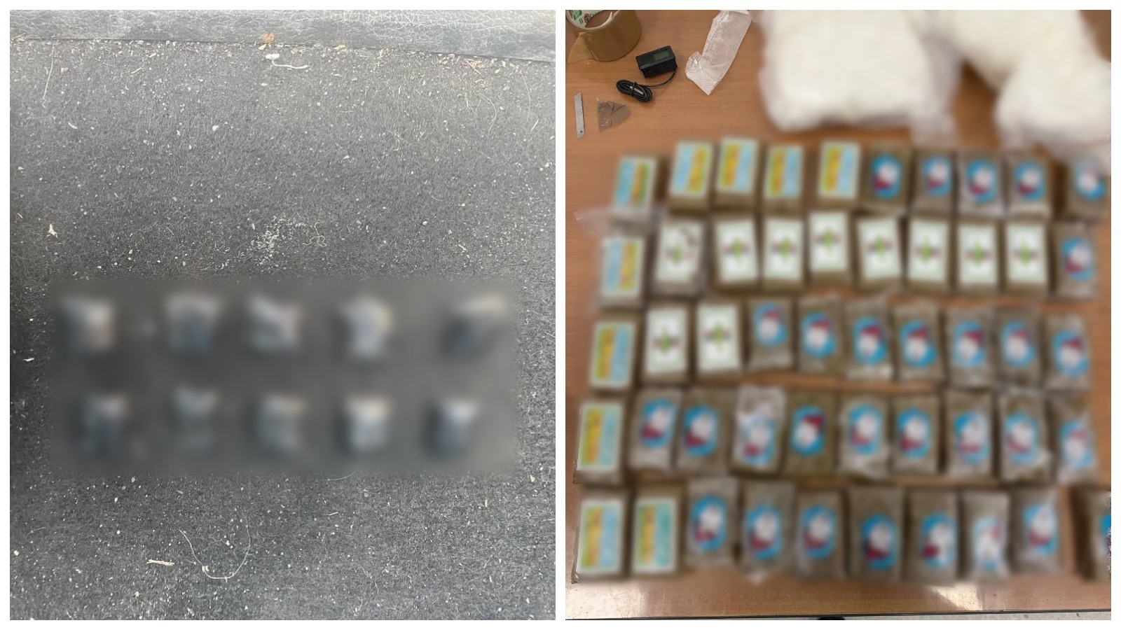 При личном досмотре и обыске машины полицейские нашли 12 свёртков, в которых находились три различных вида запрещённых веществ. При себе наркоколлеги имели около килограмма «товара». В гараже, в котором, как выяснилось, происходила фасовка запрещёнки, обнаружили ещё 10 килограммов на любой выбор — сразу четыре вида запрещённых веществ.