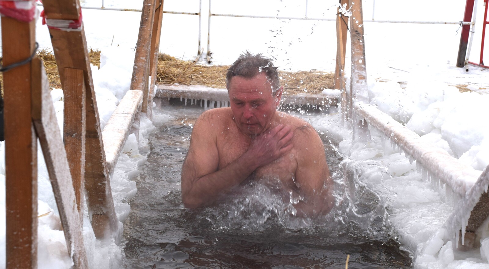 В морозный день, когда столбик термометра поднялся к -30 градусов, купания прошли без происшествий. В ледяной проруби окунулись более 380 человек.