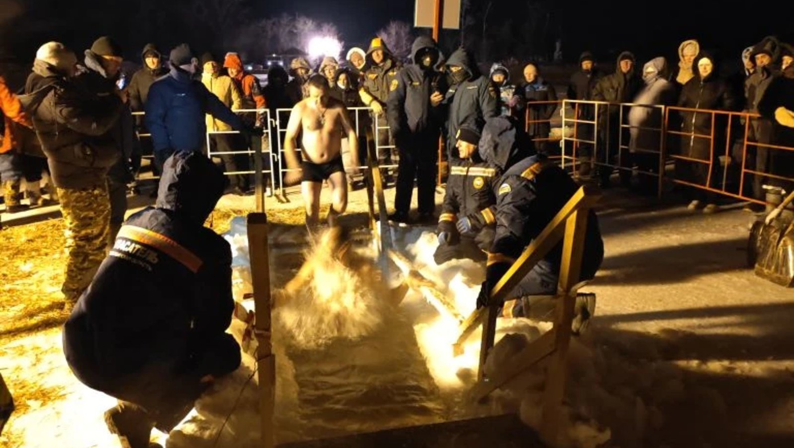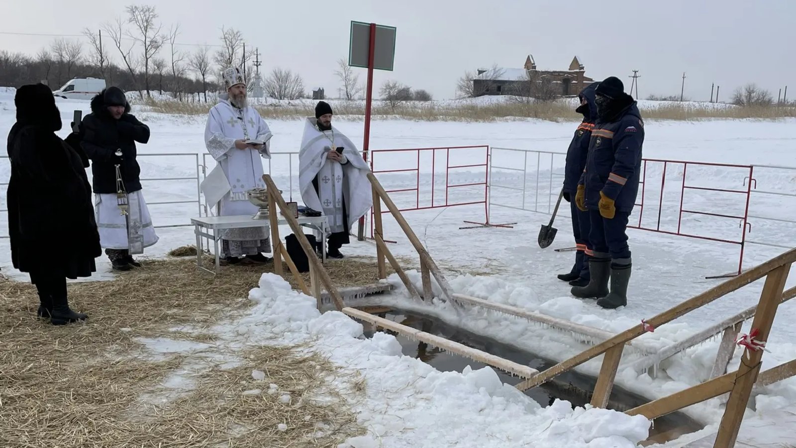 Первые желающие спустились в ледяную воду в полночь, сразу после водосвятного молебна. Его провёл иерей Кафедрального собора Андрея Первозванного Карасукского района Антоний Баранов.