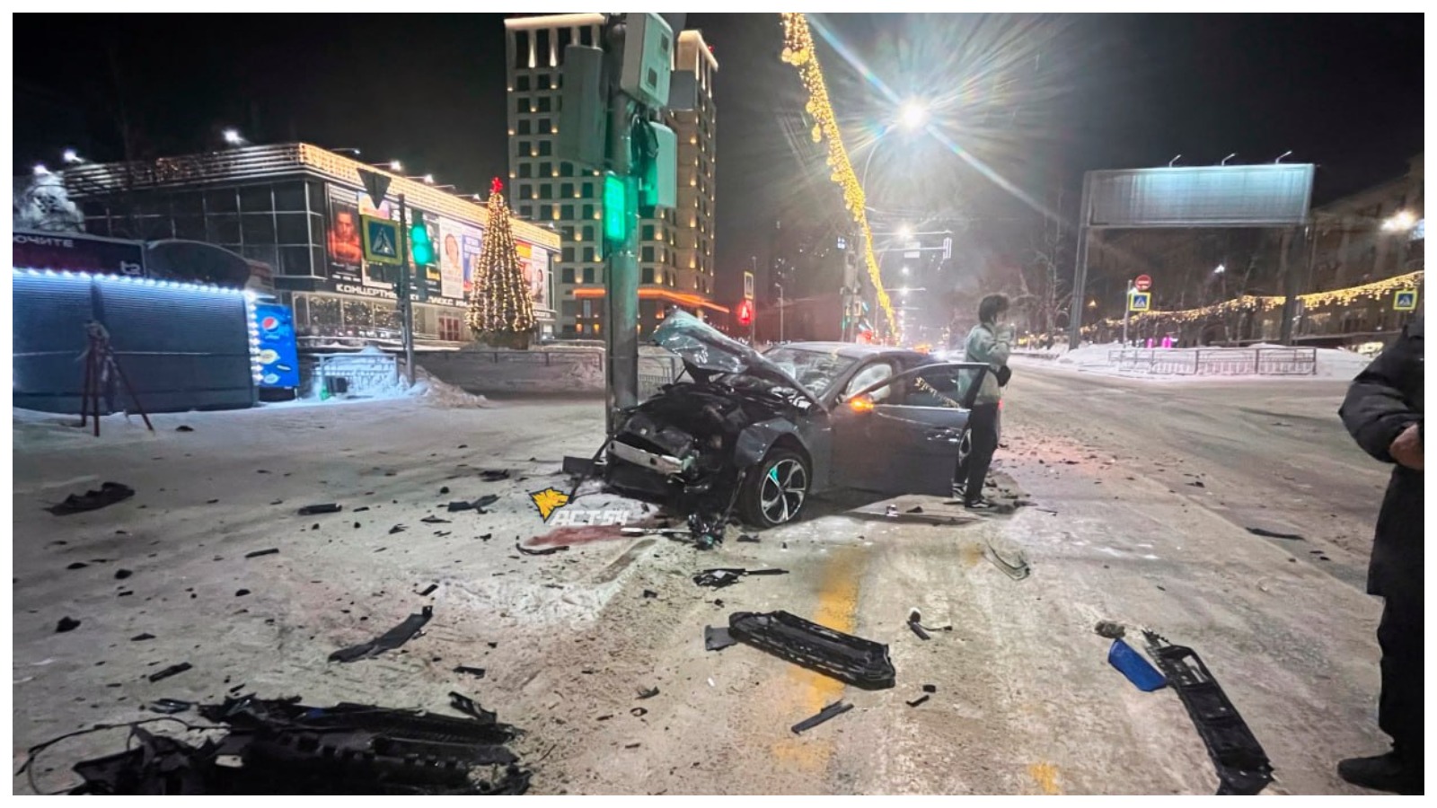 Телеграм-канал «АСТ-54 Black» поделился фотографиями с места аварии на ночной улице Новосибирска.