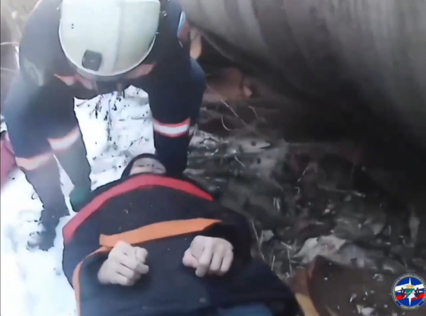 Прибыв на место, спасатели увидели мальчика 2017 года рождения, стоявшего у трубы. Он жаловался на сильную боль в правой ноге и не мог идти. Как выяснилось, ребёнок провёл в таком состоянии от двух до трёх часов, пока его не заметила прохожая.