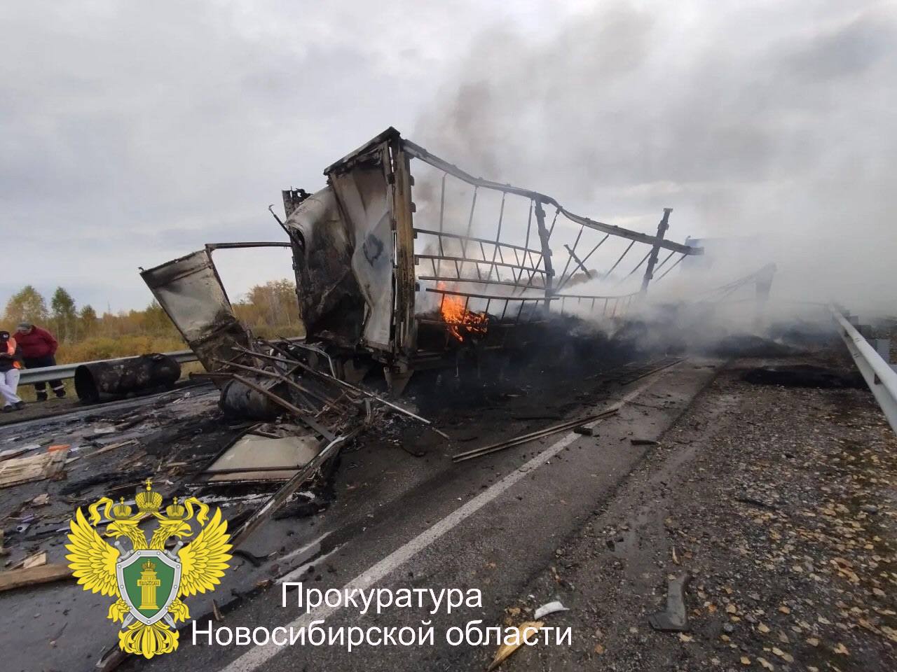 После столкновения «ГАЗ 322132» и тягач сгорели полностью, водитель газели скончался на месте.