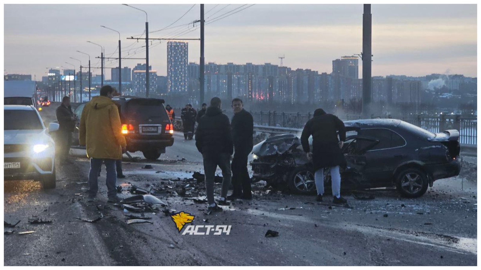 Видеозаписью «автомобильной мясорубки» поделились в телеграм-канале «АСТ-54 Black». На опубликованных кадрах видно, что движение в сторону правого берега было сильно затруднено из-за образовавшегося затора, при этом встречная сторона дороги осталась полностью свободной.