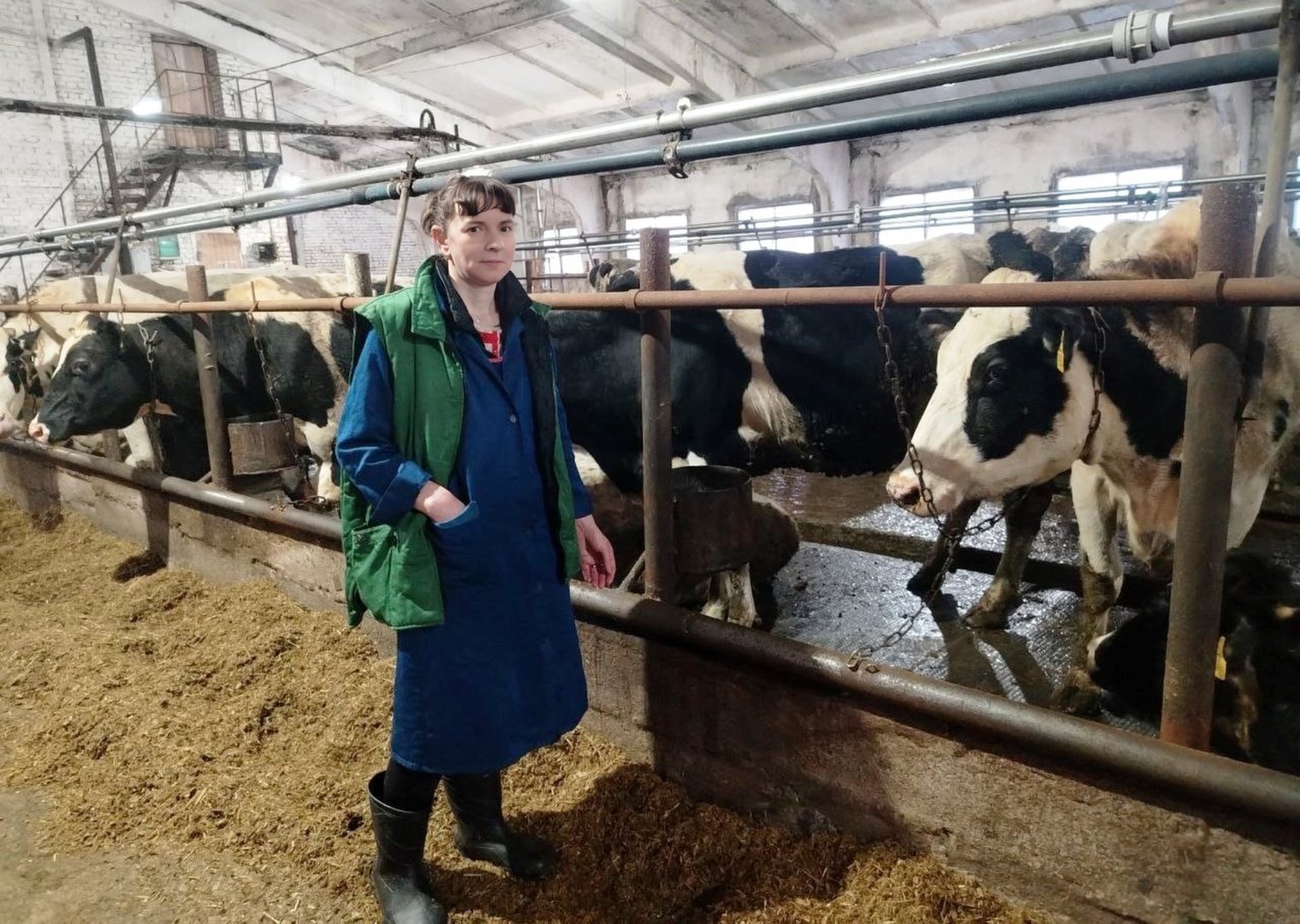 — Первая сложность — ранний подъём. Дойка в 6 утра, так что к полшестого ты уже должен быть на ферме. Нужно всех коров проверить, аппараты подготовить, всё промыть, продезинфицировать… — рассказывает Любовь Сергеевна. — Первая дойка тянется почти до одиннадцати — поголовье у нас немалое, больше 70 коров. А вечером приходим в 5 часов и работаем допоздна, до половины одиннадцатого.