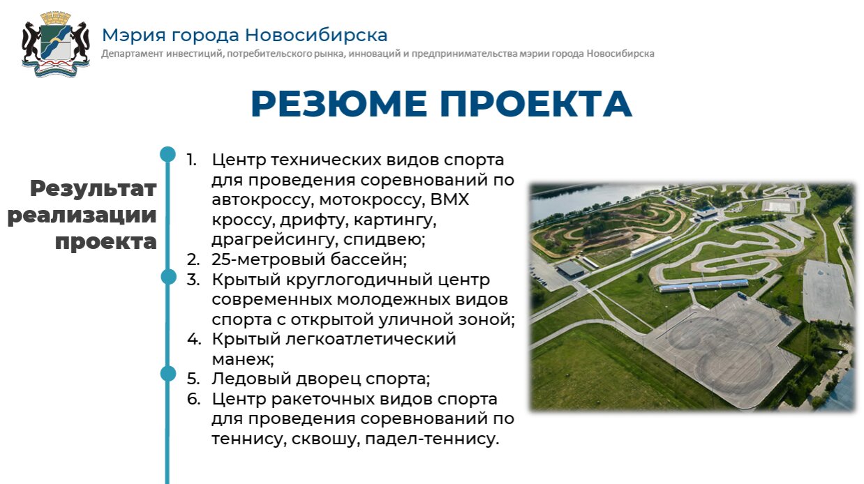 Мэрия Новосибирска ищет инвесторов для строительства центра технических видов спорта на улице Выборной. Здесь планируется проводить соревнования по автокроссу, мотокроссу, BMX-кроссу, дрифту, картингу, драгрейсингу и спидвею. Площадь выделенного участка составляет 894 462 квадратных метра.