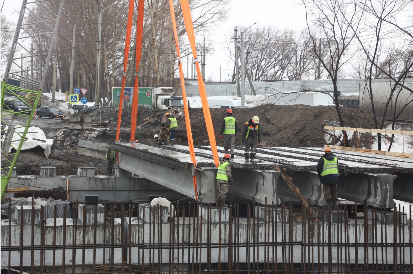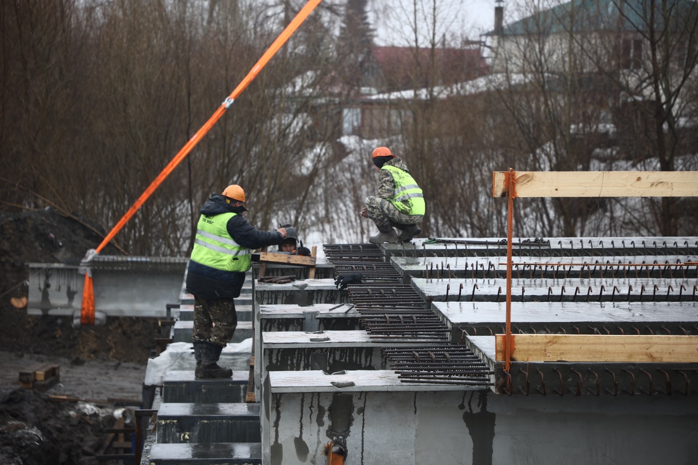 На сегодня готовность объекта составляет 40 %. Установлены все сваи, полностью готовы три опоры, завершаются работы по возведению четвёртой.