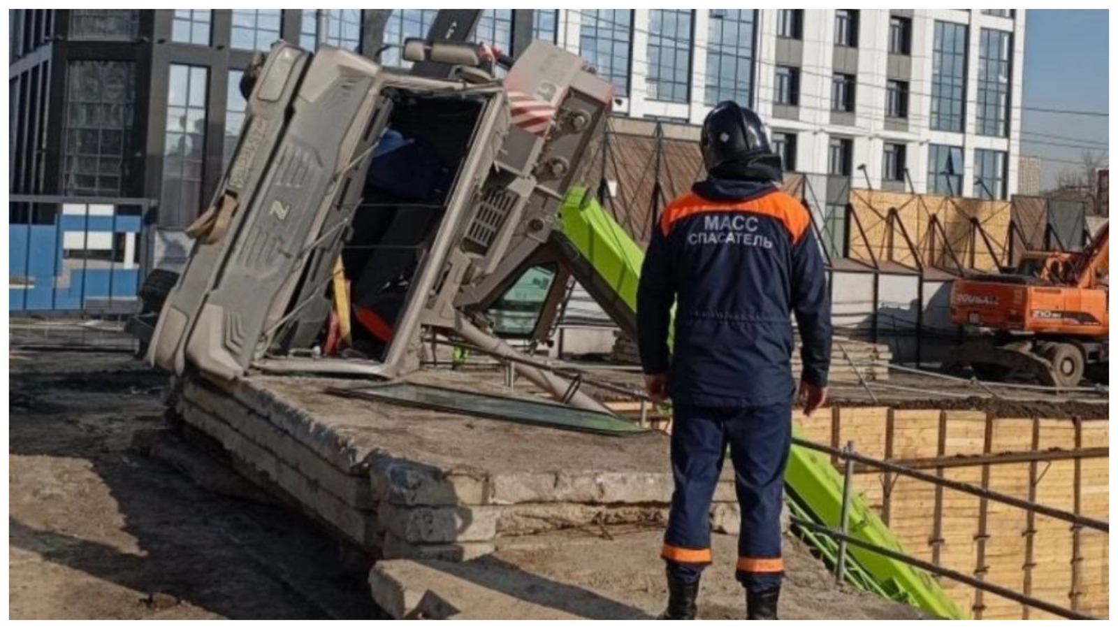 В Новосибирске на стройплощадке по улице Фрунзе, 218 произошло падение автокрана. На место выезжал экипаж спасателей «Вега-1».