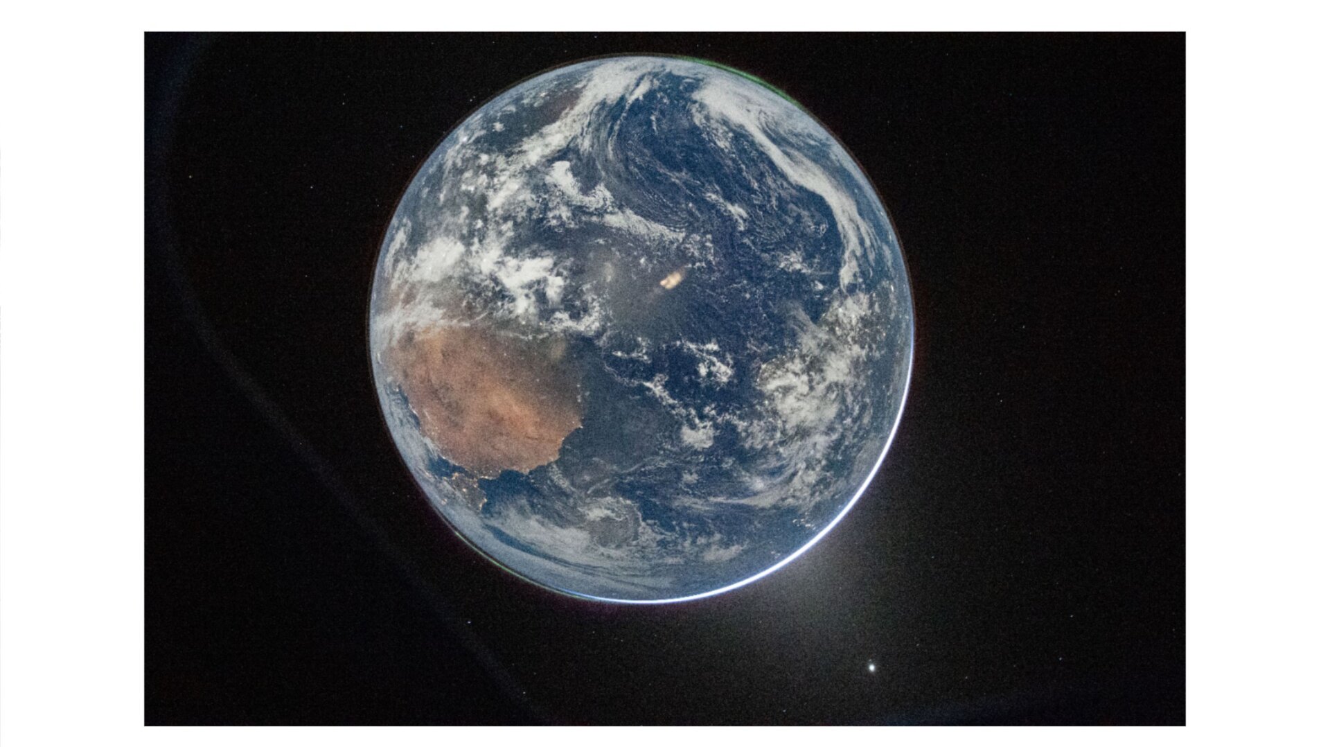 На снимке изображена Земля со стороны Атлантического океана. А звезда ниже и правее Земли — это Венера, пояснили в NASA.