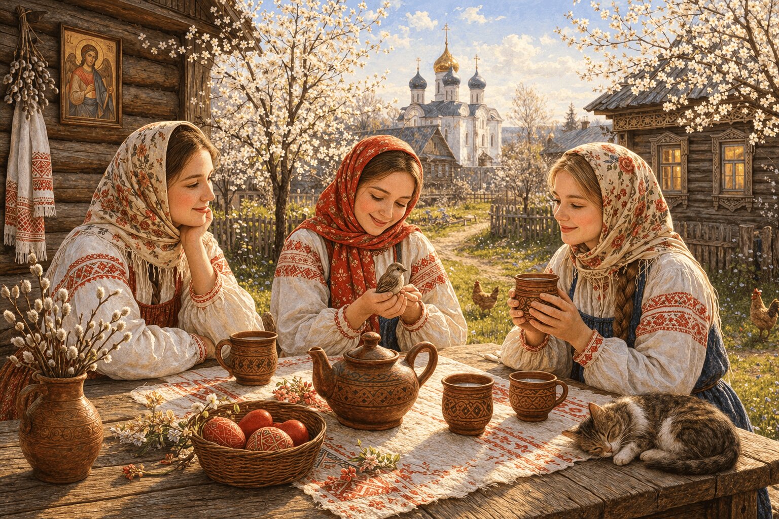 Девушкам не советовали ходить с непокрытой головой, а хозяевам — выбрасывать еду и обижать животных. Даже бытовые мелочи имели значение: вытирать стол бумажными салфетками считалось плохой приметой — можно разозлить Домового и накликать скандалы в доме.