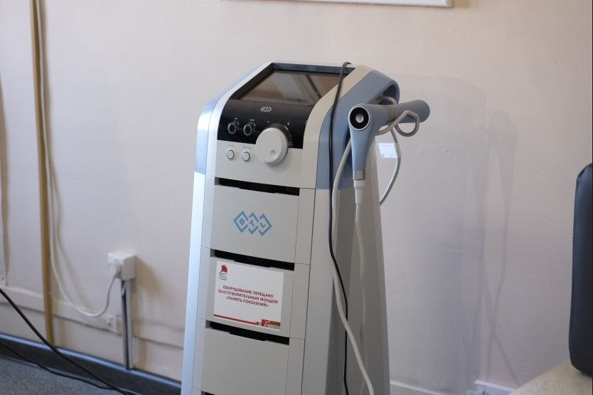 Аппарат для ударно-волновой терапии, также полученный госпиталем в подарок, уже введён в эксплуатацию. Прибор снижает болевой синдром и усиливает регенерацию тканей после ранений. Первыми пациентами стали участники специальной военной операции.