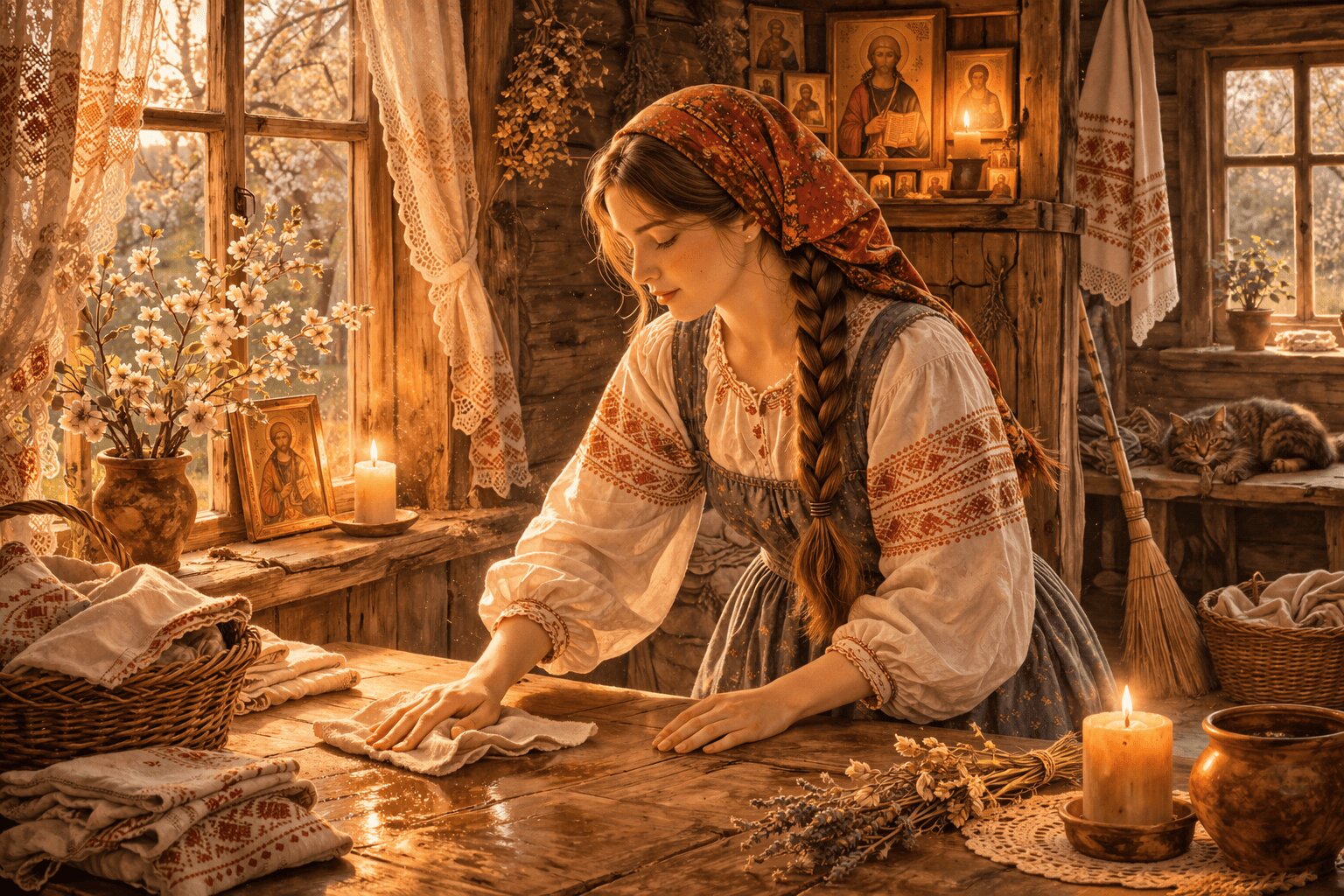 Главное внимание уделяли дому: считалось, что порядок защищает от бед. Хозяйки наводили чистоту, разбирали вещи и избавлялись от лишнего, но старались не выбрасывать их, а отдавать нуждающимся.