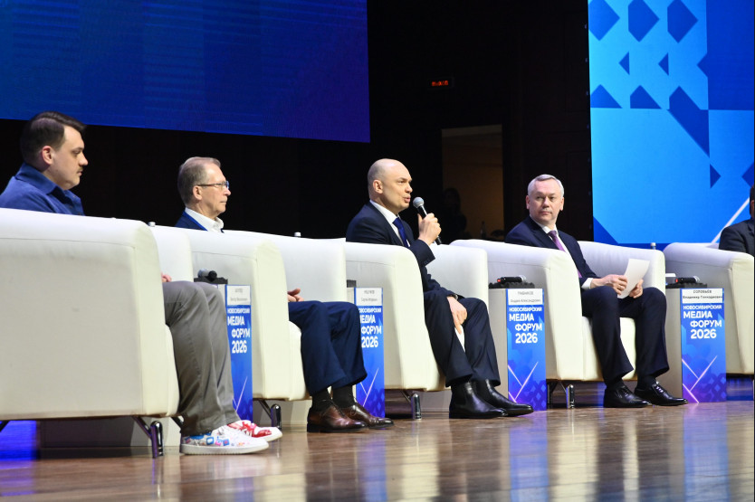 Губернатор Андрей Травников поприветствовал участников «Новосибирского медиафорума-2026». В пленарном заседании, которое открыло форум, также участвовали председатель Союза журналистов России Владимир Соловьёв, президент «Шкулёв Холдинг» Виктор Шкулёв, директор департамента по работе с органами государственной власти RUTUBE Игорь Павлов, руководитель отдела продвижения и аналитики Департамента стратегического партнёрства VK Николай Афиногенов.