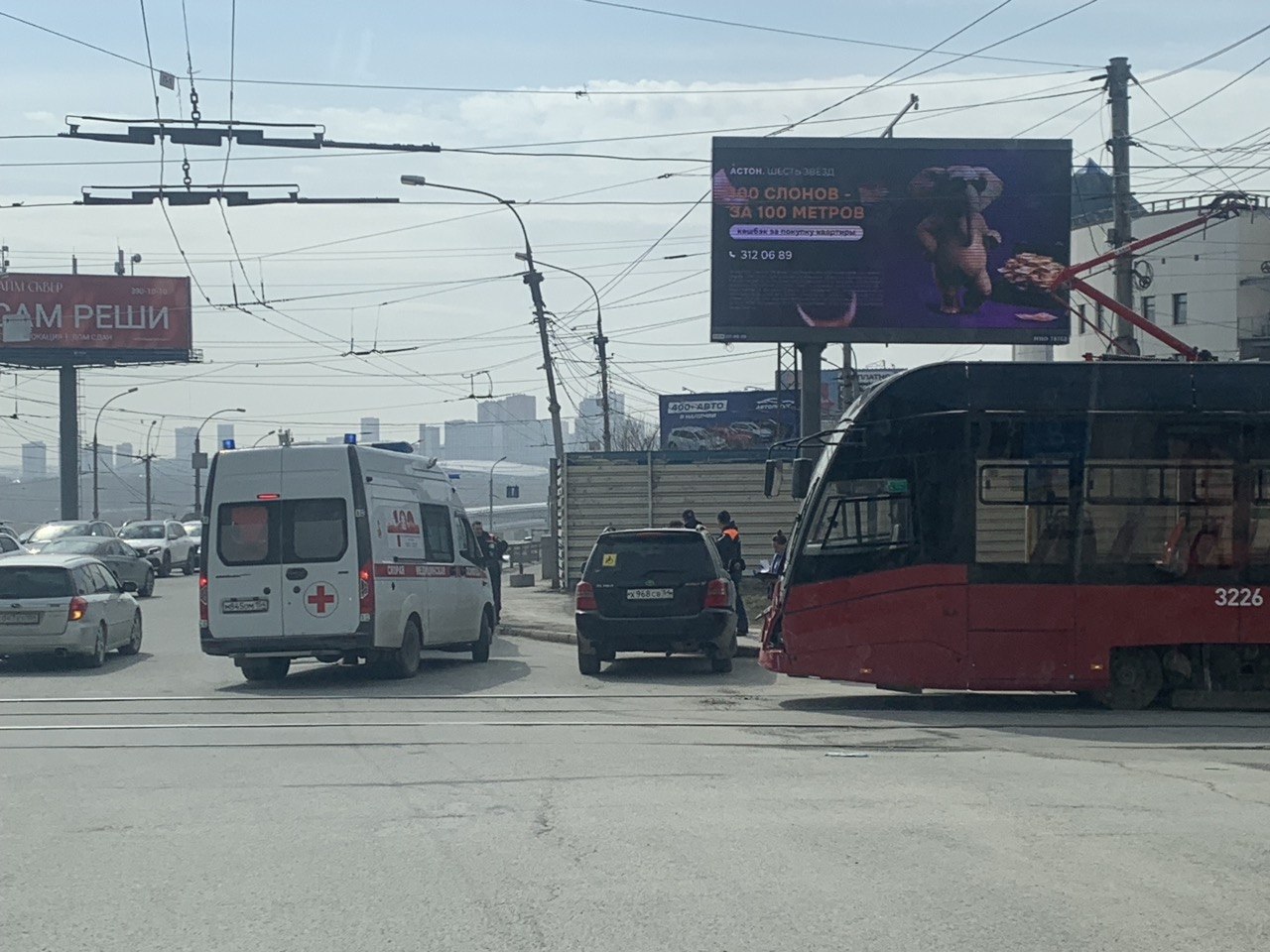 Знаменитый трамвай маршрута № 13 врезался в иномарку «Toyota Harrier» на перекрестке улиц Зыряновская и Восход. Вагон трамвая вошел в правый бок автомобиля со знаком инвалида на заднем стекле, которым управляла пожилая женщина. На место ДТП прибыло две машины Скорой помощи, но, как быстро выяснилось, водительница при столкновении не пострадала.