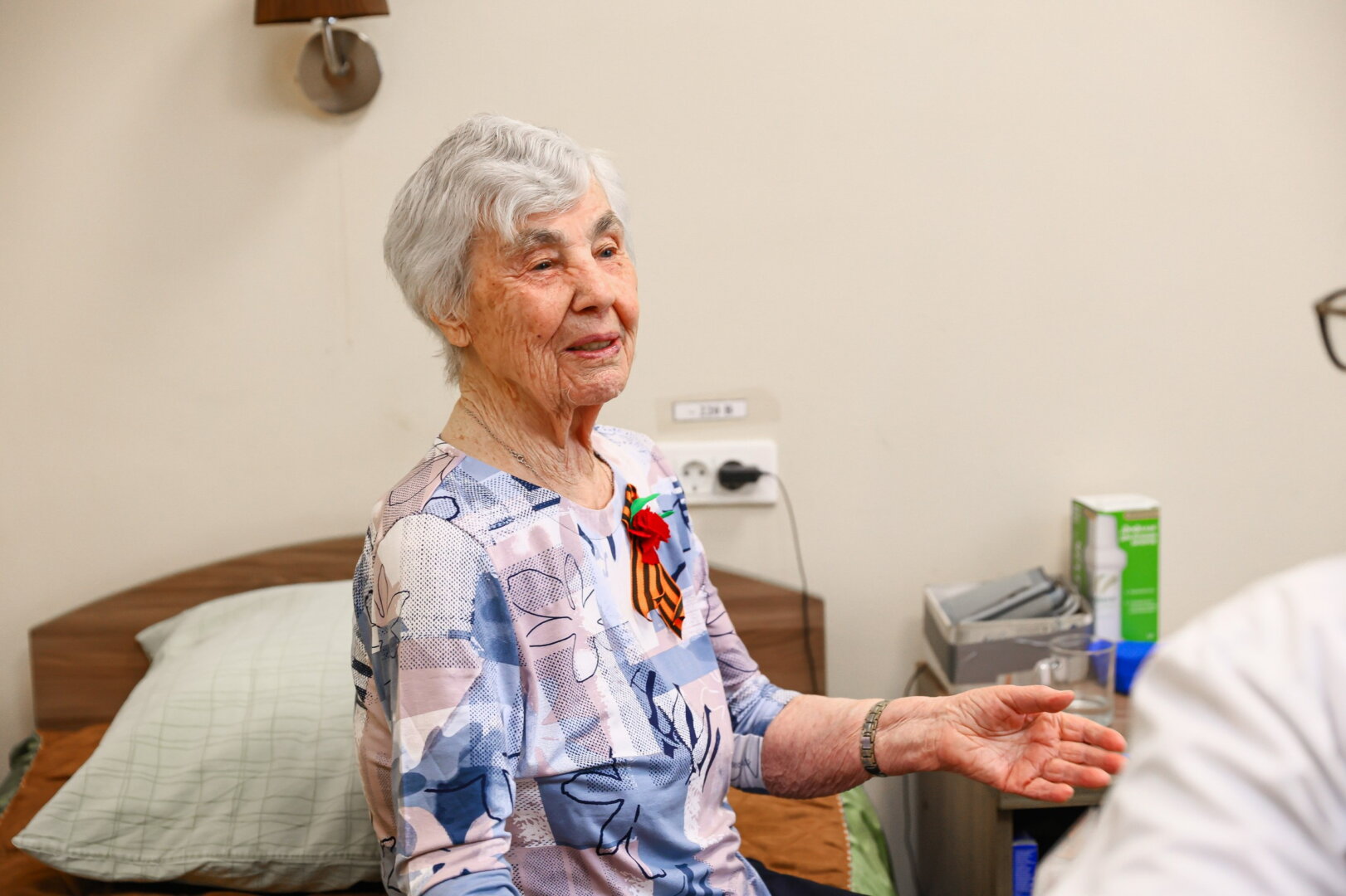 Очередной утренний обход показал, что здоровье у Анны Яковлевны Демениной в полном порядке: сахар в норме, давление 135 на 80, чем не каждый молодой человек может похвастаться. А между тем, 12 апреля этого года Анне Яковлевне исполнился 101 год. Она начала работать в годы войны, а в 1947 году пришла на Новосибирский электровакуумный завод, где проработала в одном из цехов почти 40 лет. В прошлом году она впервые посетила СОЦ «Обские зори» и была очень впечатлена атмосферой в этом учреждении. Говорит, что решение вернуться сюда приняла год назад, и рада, что оказалась здесь снова.