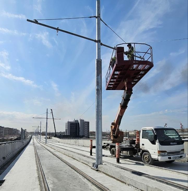 Как сообщили в группе компаний «ВИС», являющейся концессионером строительства четвёртого моста через Обь в Новосибирске, на площади Труда на левом берегу начат монтаж контактной сети для запуска движения трамваев по эстакаде. Таким образом, трамвайные пути будут убраны с земли и не мешать автомобилистам.