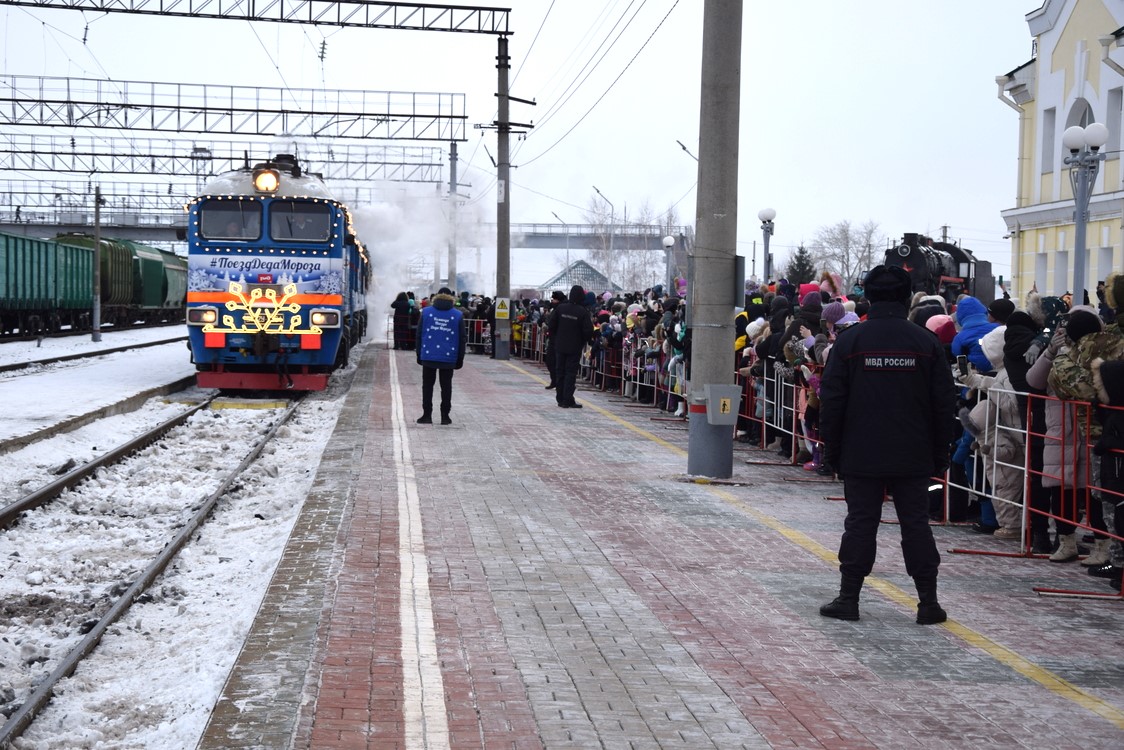 Жители Карасукского муниципального округа Новосибирской области задолго до приезда Поезда Деда Мороза собрались на перроне станции Карасук-1 в ожидании заветного гудка паровоза. Сказочных героев передвижной резиденции ждали не только дети, но и взрослые. Это подарок сибирякам от ОАО «РЖД» и правительства Вологодской области. Более тысячи человек приветствовали новогодних гостей — мороз в −20 градусов их не испугал.