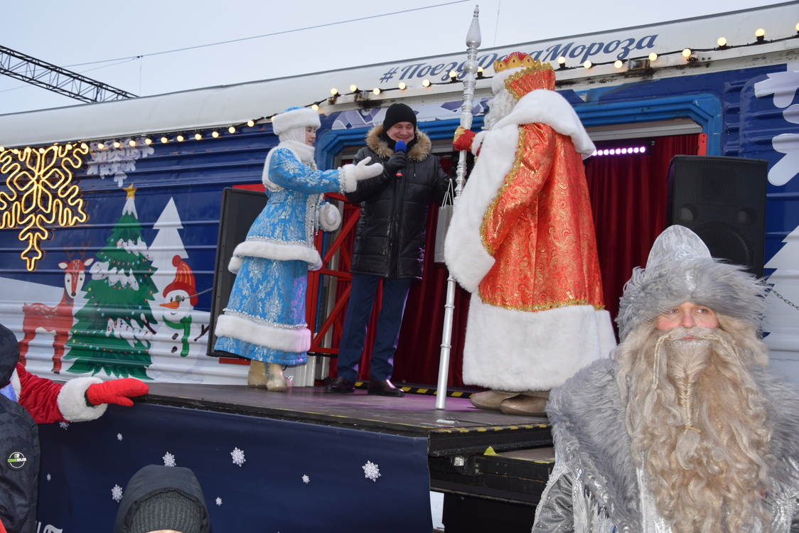 В завершение праздника, когда Дед Мороз объявил о прощании с жителями и гостями Карасука, на сцену Поезда вышел глава округа Вячеслав Кулаков. Он поблагодарил команду передвижной резиденции за такой тёплый праздник в морозный день и вручил подарок главному новогоднему волшебнику.