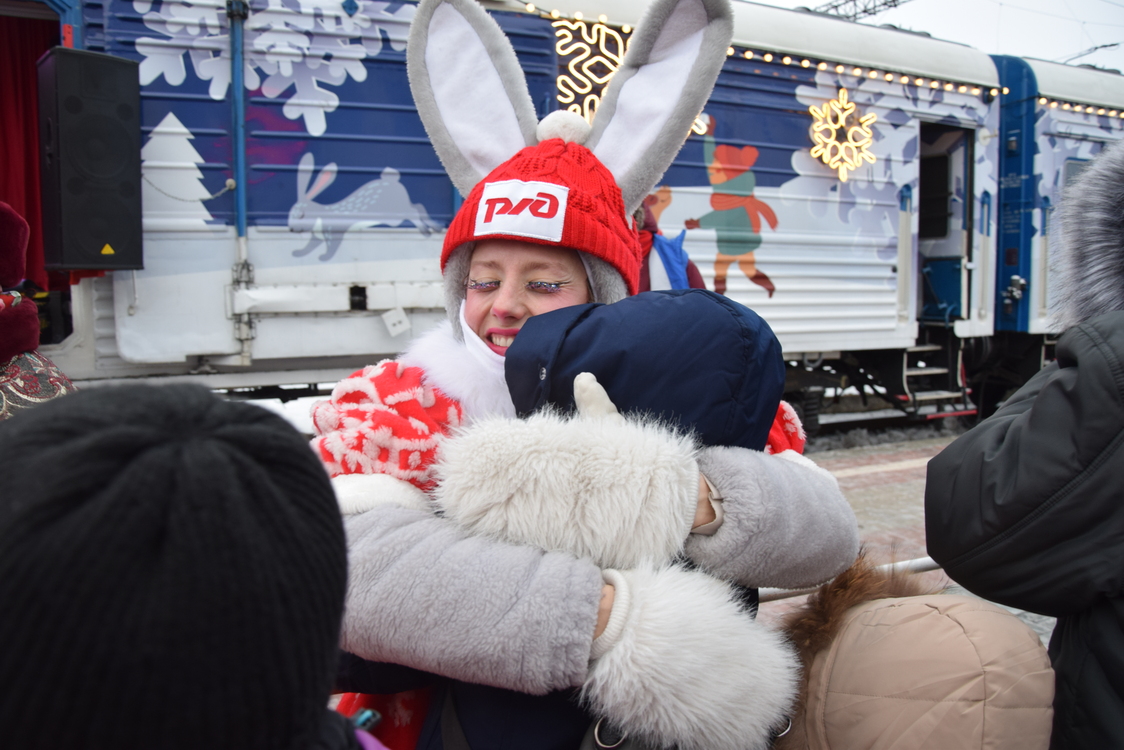 Одним из самых трогательных моментов стало прощание. Дед Мороз и сказочные герои вышли на перрон: жали руки, обнимали людей. В объятия новогодних гостей стремились не только дети — взрослые тоже выстраивались в очередь. Многие успели сделать фото на память.
