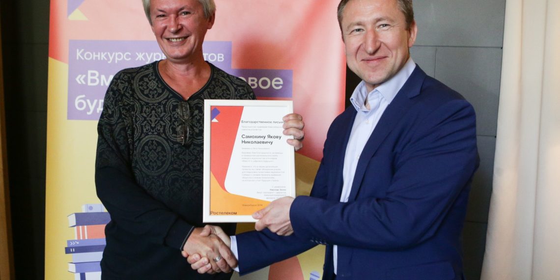 Благодарственное письмо за помощь в организации конкурса постоянному члену жюри Якову Самохину вручил вице-президент — директор макрорегионального филиала «Сибирь» ПАО «Ростелеком» Николай Зенин
