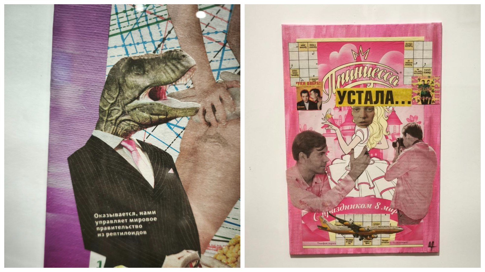 Выставка состоит из работ, в каждой из которых навсегда застыли воспоминания и рассуждения зиллениалов. Какие-то из них вызовут приятное тепло в груди, какие-то отзовутся коллективной болью всего поколения, но все они важны и должны быть облачены в форму, понятную каждому. Этой формой стали коллажи, собранные из газет и журналов того времени — лежавшая на чердаках и антресолях макулатура, которой суждено было оказаться на помойке, когда «дойдут руки» до генеральной уборки. Но то, что считают мусором бумеры, это дорогие сердцу и застывшие на пожелтевшей бумаге воспоминания целого поколения, застрявшего между небом и землёй.