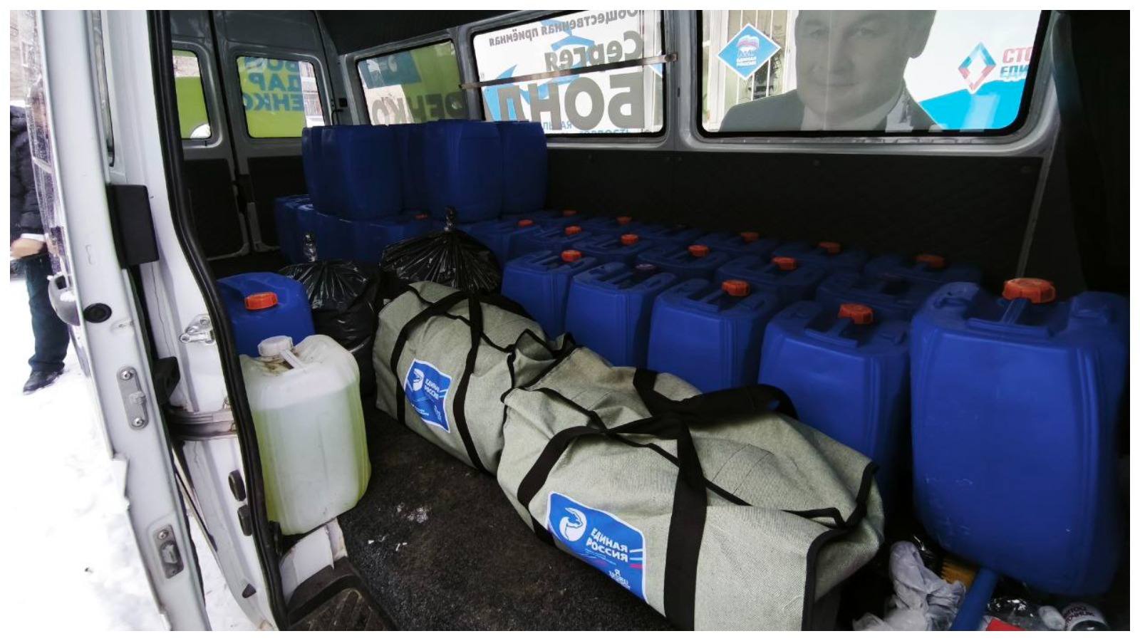 «В этой партии у нас 30-литровые канистры, которые пригодны для воды и топлива. Также носки, тёплые коврики, самое главное, что мы направляем туда — это печки-«буржуйки», которые согреют бойцов в любой сложной ситуации, в том числе на глубине 2,5−3 метра. Это собственное производство, мы этим занимаемся давно, сегодня мы просто попали под ваши камеры. Занимаемся этим систематически. Мне кажется, что как раз гуманитарная помощь — это необходимая связь, это говорит о том, что мы смотрим в одном направлении, направлении Победы. До конца года, я думаю, что ещё порядка 20 печей мы туда отправим, а грузов таких, наверное, два или три мы точно соберём».