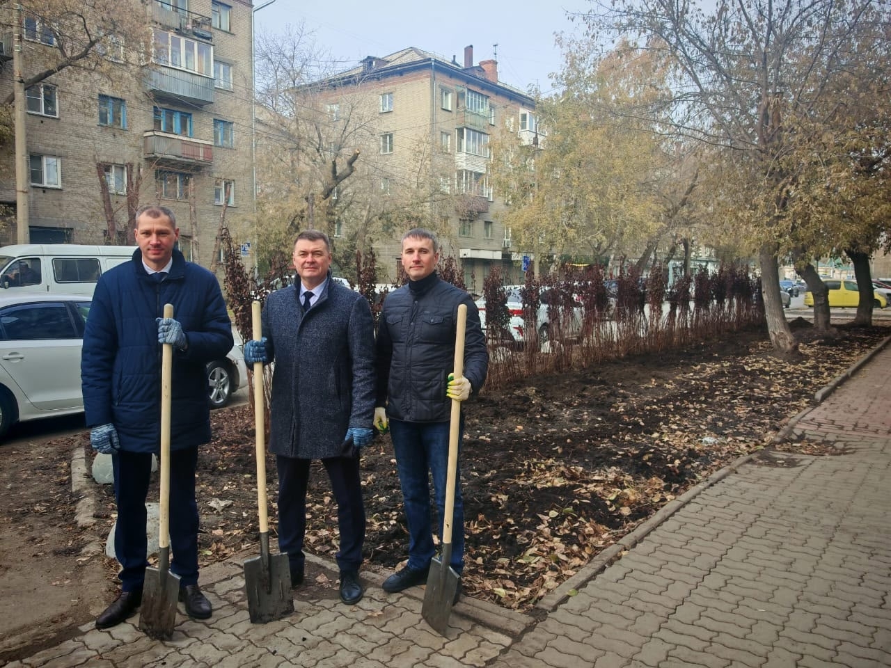 23 октября: Сегодня совместно с главой администрации Центрального округа и начальником Горзеленхоза высаживали живую изгородь из 100 кустов пузыреплодника на ул. Советской, 44. Таким образом, продолжаем борьбу с парковкой на газонах Центрального района.