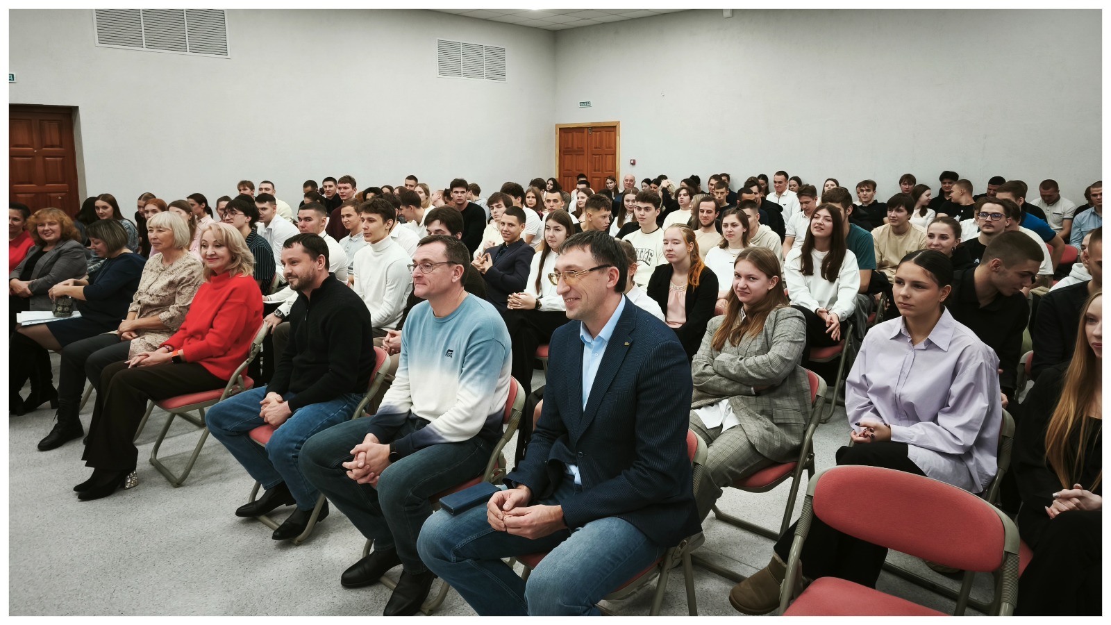 Слово взял также заместитель председателя Совета депутатов города Новосибирска Николай Андреевич Тямин. Он рассказал студентам о том, как учился сам в своё время в этих же стенах и подчеркнул, что раньше у них не было ни стипендий, ни поблажек из-за сборов и соревнований, и поздравил с достижениями факультета всех его студентов: